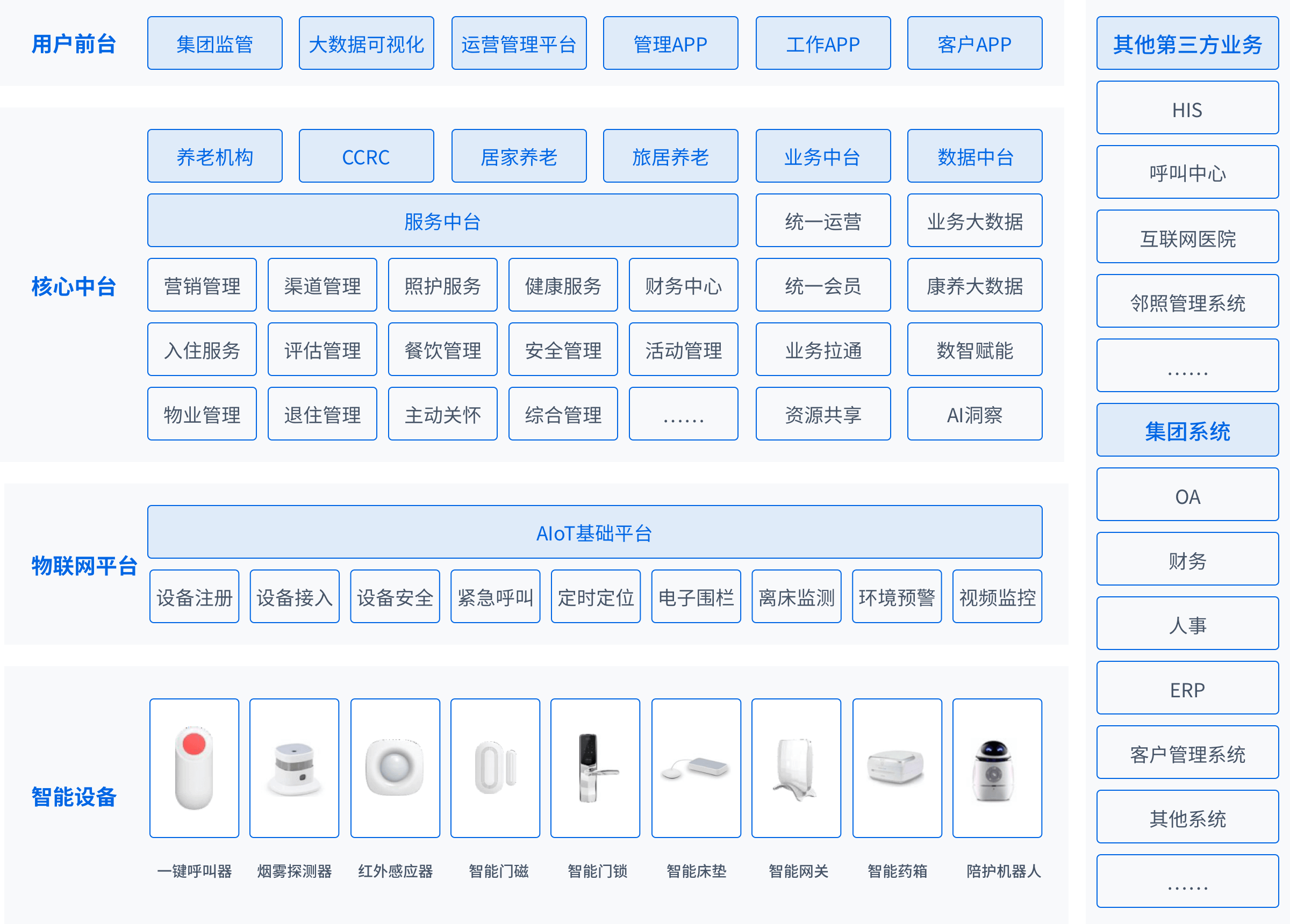 CCRC长期照料退休社区信息化与智能化解决方案通过软件与硬件结合的方式,实现CCRC社区各板块业务的全过程流程化管理,满足集团及项目的实际运营管理需求,实现高端养老项目 “高起点规划、高水平设计、高标准管理、高质量服务” 的目标要求。