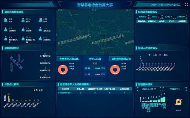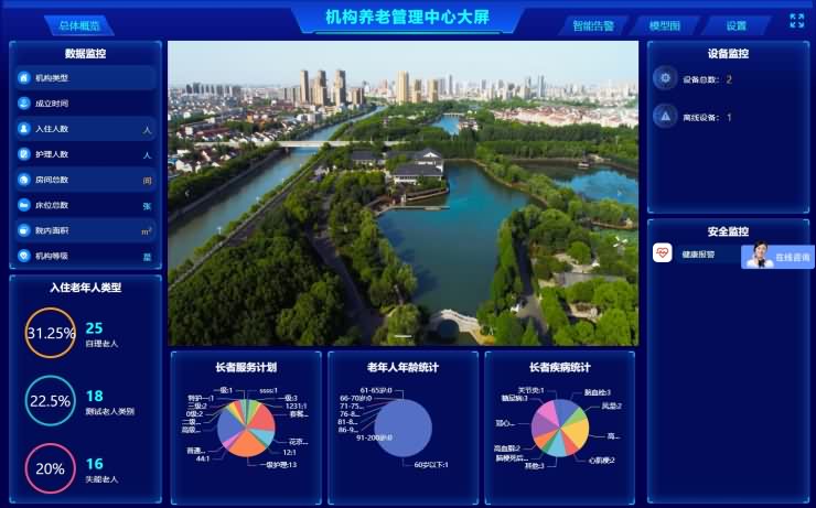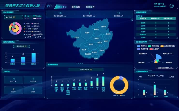 利用大数据技术结合AI将养老数据直接呈现,数据分析结果一目了然,是对外展示的重要窗口