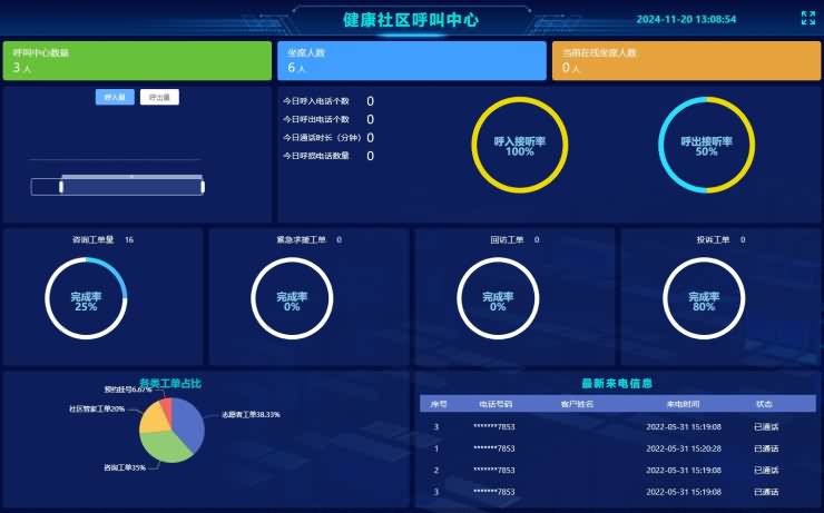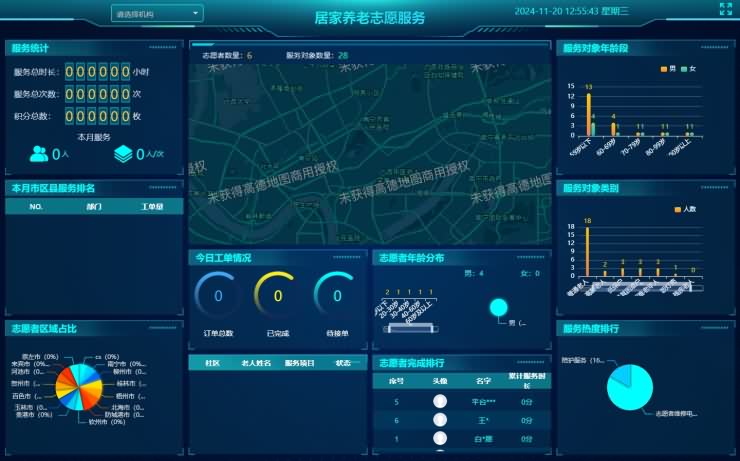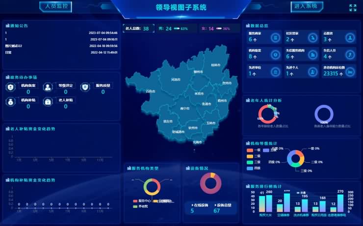 系统配套养老数据库,自动分析,形成数据可视化大屏展现,便于决策及分析